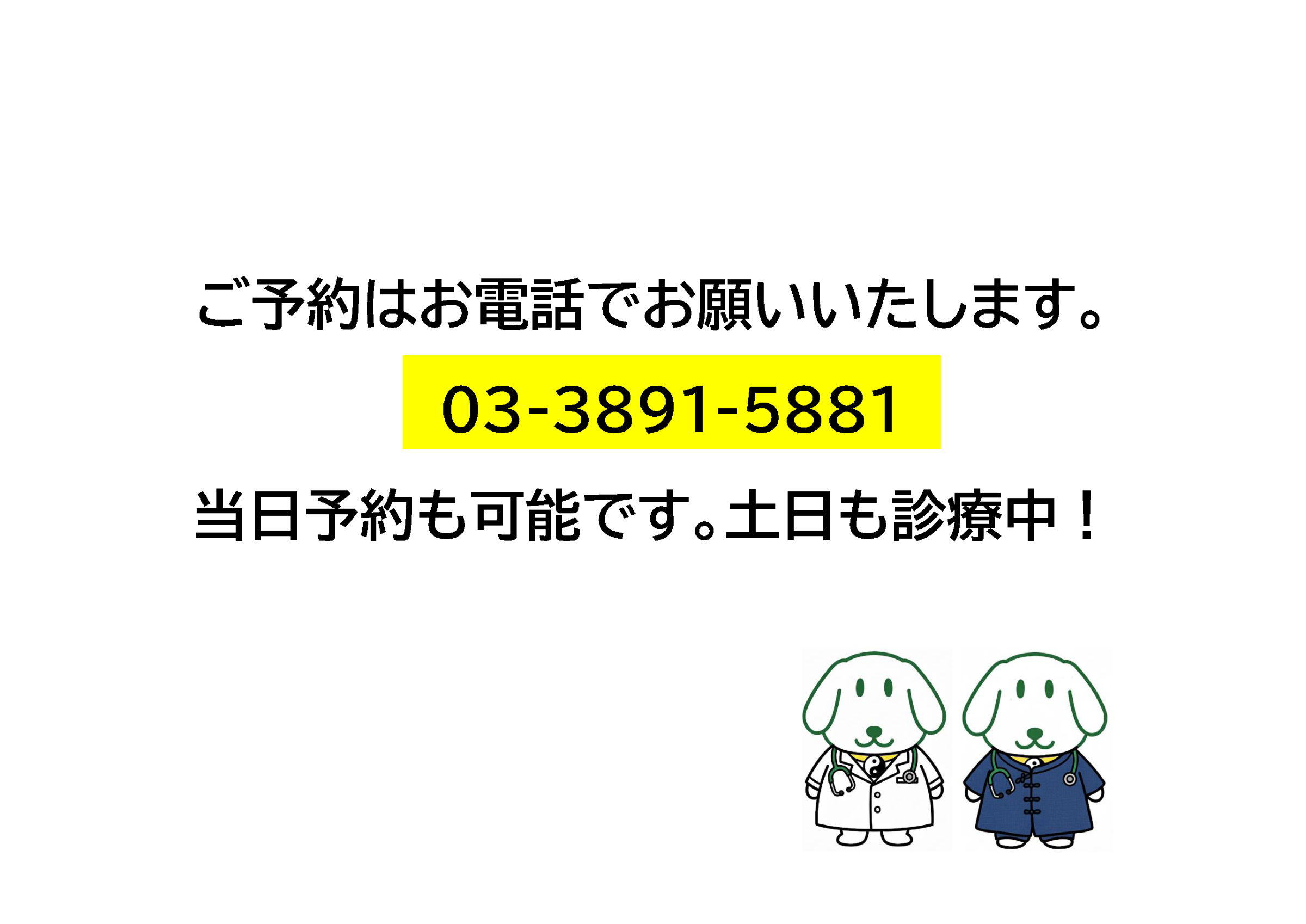 ご予約はお電話でお願いいたします。