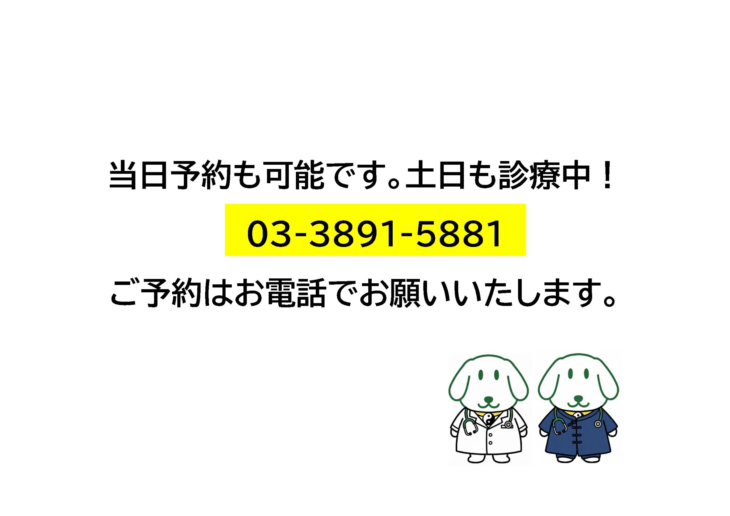 外科手術、救急医療、入院治療、お預かりは対応しておりませんのでご了承ください。